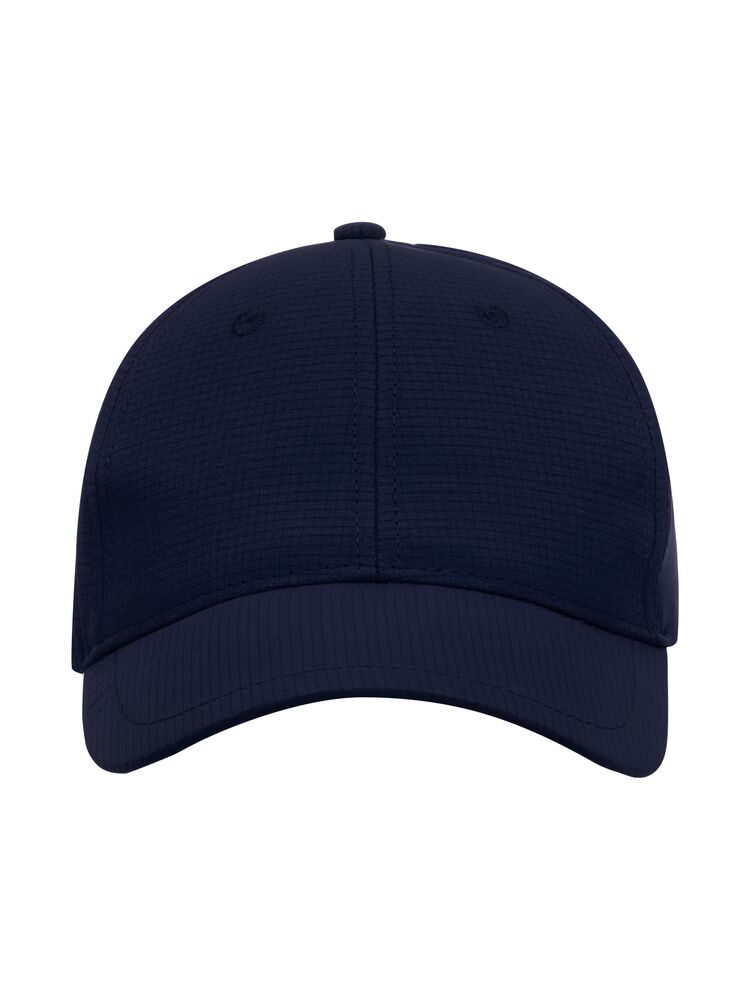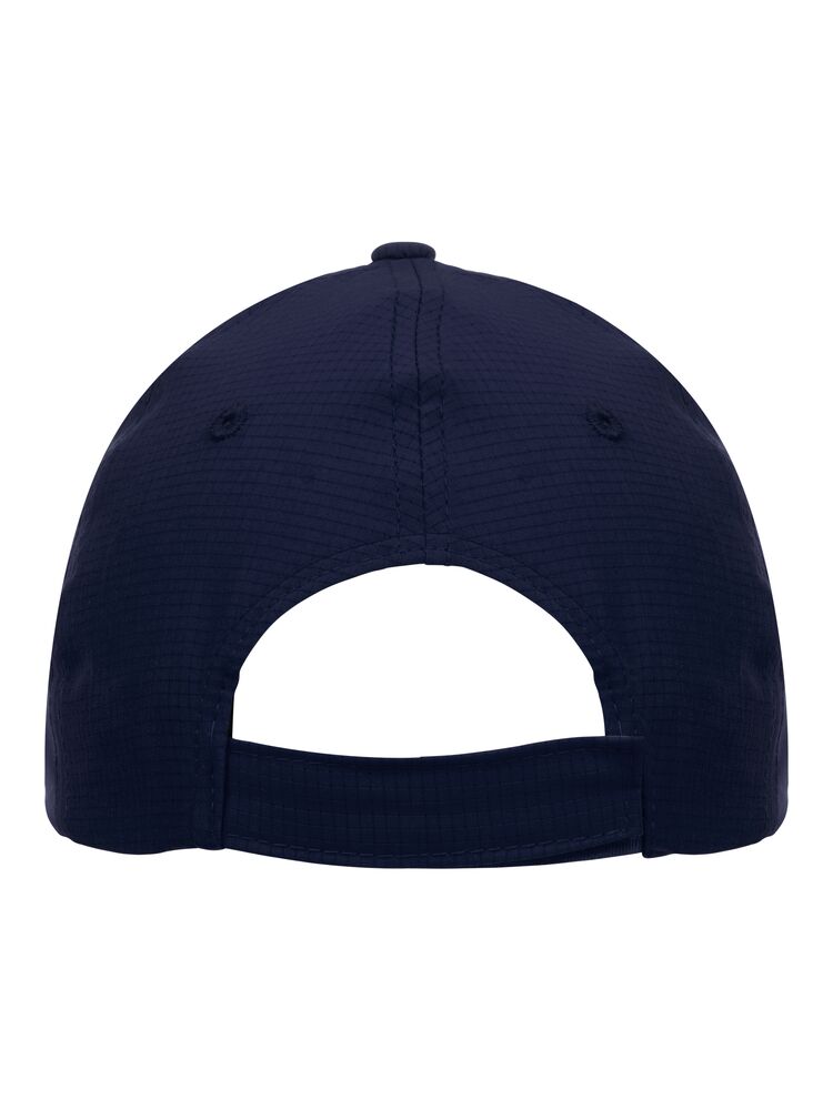 Cappellino sportivo a 6 pannelli. Tessuto elasticizzato. Chiusura con cinturino regolabile in velcro. Parte inferiore della visiera nera