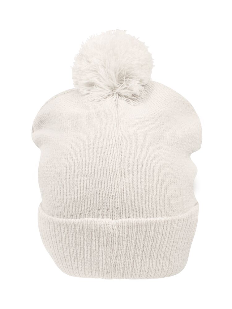 Berretto lavorato a maglia con risvolto. Pon pon bicolore. Patch stampabile in twill di cotone.