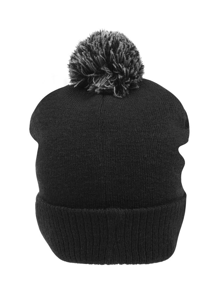 Berretto lavorato a maglia con risvolto. Pon pon bicolore. Patch stampabile in twill di cotone.