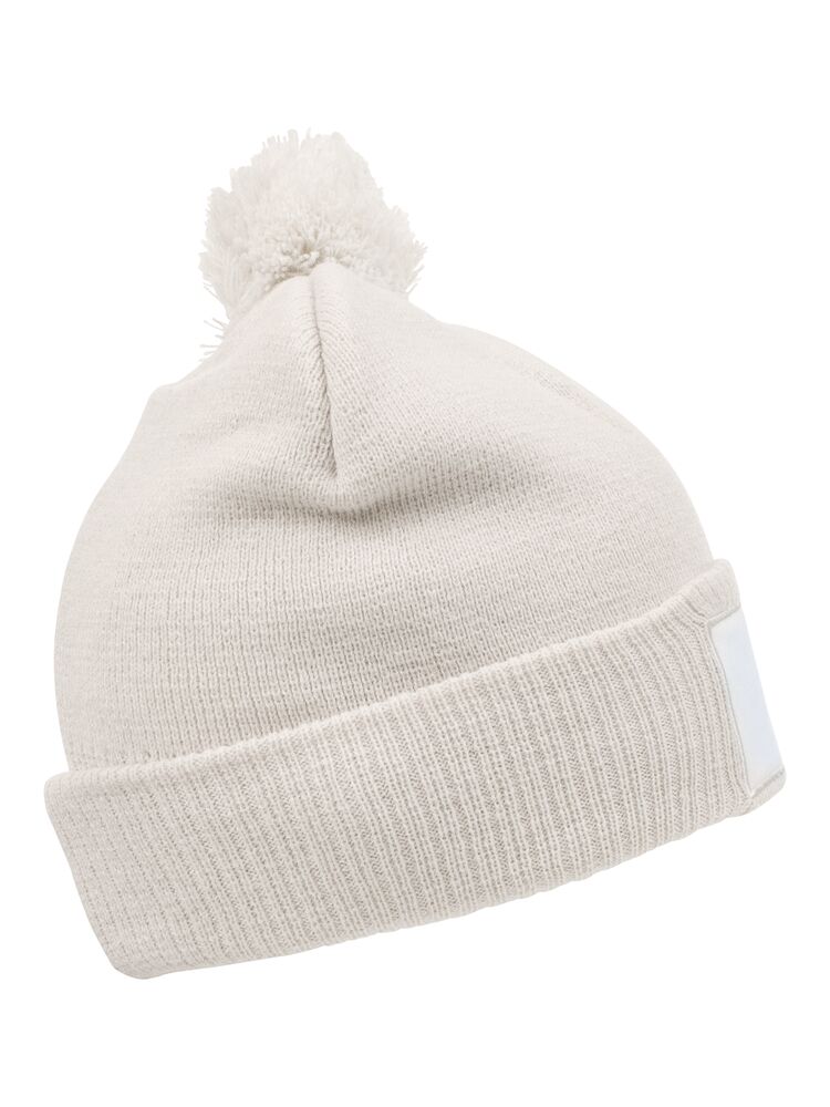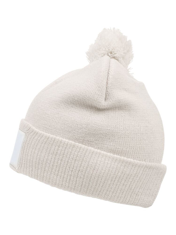 Berretto lavorato a maglia con risvolto. Pon pon bicolore. Patch stampabile in twill di cotone.