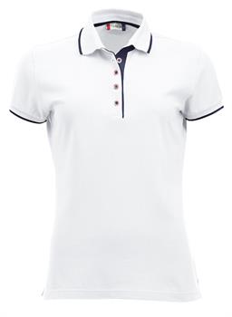 Polo piquet donna mezza manica. Tessuto pettinato stabilizzato. Tre bottoni colorati per uomo e cinque per donna. Nastrino parasudore. Colletto reverse con profilo e canotto a contrasto. Bordo manica con costina. Spacchetti laterali a contrasto.