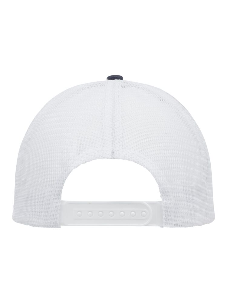 Cappellino trucker a 5 pannelli. Twill di cotone spazzolato. Mesh posteriore in poliestere. Chiusura snapback.