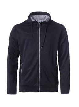 Felpa sportiva con cappuccio e cerniera divisibile. Tessuto tecnico elasticizzato, morbido e confortevole. Cappuccio con fodera in rete e laccioli. Polsini con profilo elastico. Tasche laterali con zip. Taschini interni con asola per auricolari.