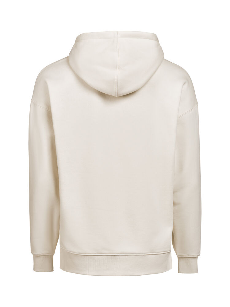 Questa felpa unisex con cappuccio si presenta con una vestibilità modern over ed è realizzata in un mix di 80% cotone biologico e 20% poliestere riciclato. Il tessuto da 350 g/m² offre morbidezza e stabilità grazie al lavaggio enzimatico, ideale per un comfort che dura tutto il giorno. Cappuccio regolabile con coulisse, polsini e orlo inferiore a coste 2x1.